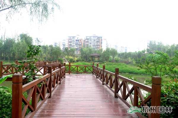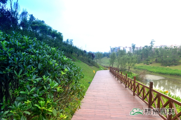 瀘州市玉帶河濕地公園(一期)工程位于四川省瀘州市龍馬潭區(qū),施工內(nèi)容包括完善公園一期120余畝范圍內(nèi)園林道路、植物種植、拱橋、曲橋、水上園路、景觀亭等基礎(chǔ)設(shè)施建設(shè),玉帶河片區(qū)截污干管建設(shè)等。工程于2013年8月開工,2014年5月竣工,歷時(shí)9個(gè)月。該工程榮獲“2014年度浙江省優(yōu)秀園林綠化工程銀獎(jiǎng)”。